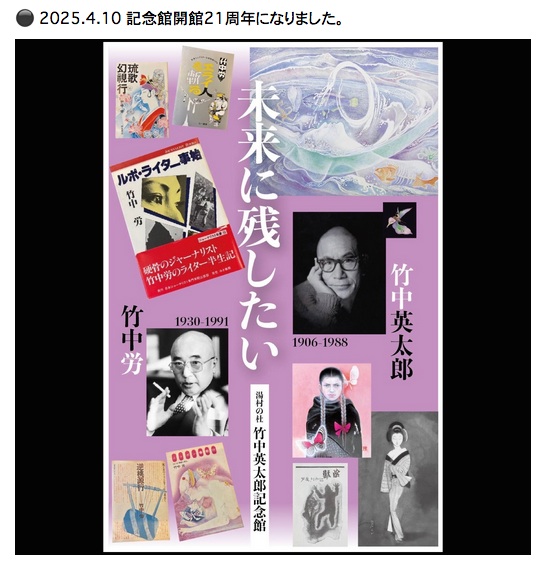 2024年4月10日平成16年(2004年)4月10日、湯村の杜 竹中英太郎記念館をオープン致しました。