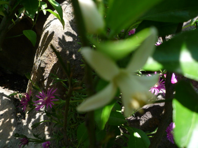 数年前、記念館の入り口にA.A様が植えて下さいました「柚子の木」にお花が咲きました。可憐な可愛らしいお花です。