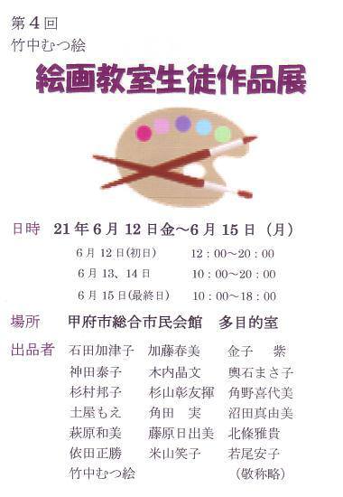 第4回竹中むつ絵絵画教室作品展のお知らせ