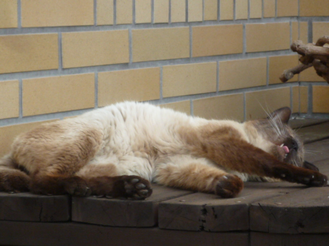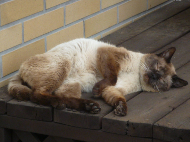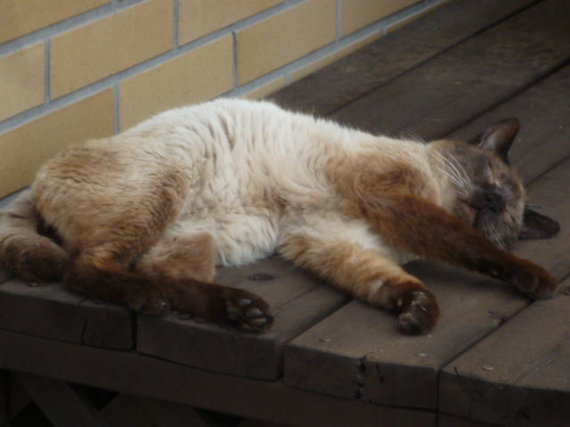 はなちゃん(=^・^=)はご飯を食べてからどこにも行かず、ベランダで安心して眠っています。