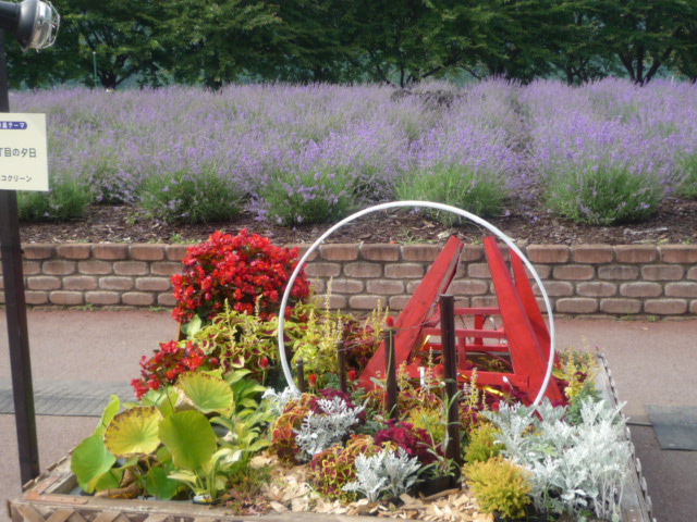 ラベンダーの前のミニ花壇(作品もテーマがあり、一つの絵になっているのですね)素敵です、何時か行ってみたいで〜す。