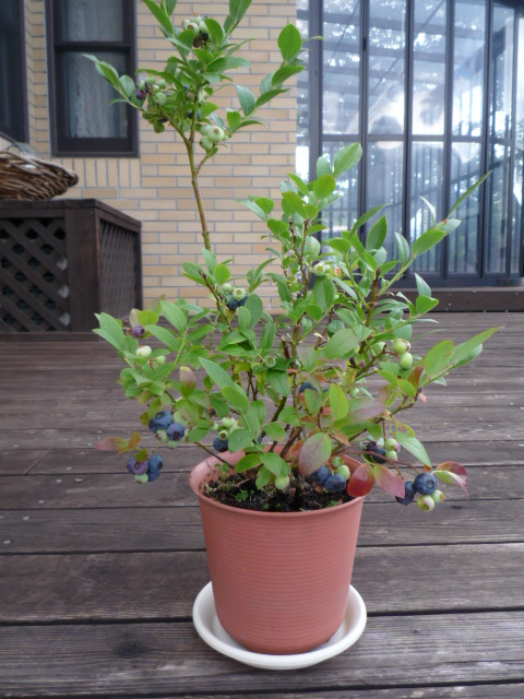 ハーブ館で小さなブルーベリーの木を1000円で購入しました。実を食べ終えましたら、もう少し大きい鉢に植え替えようと思います。