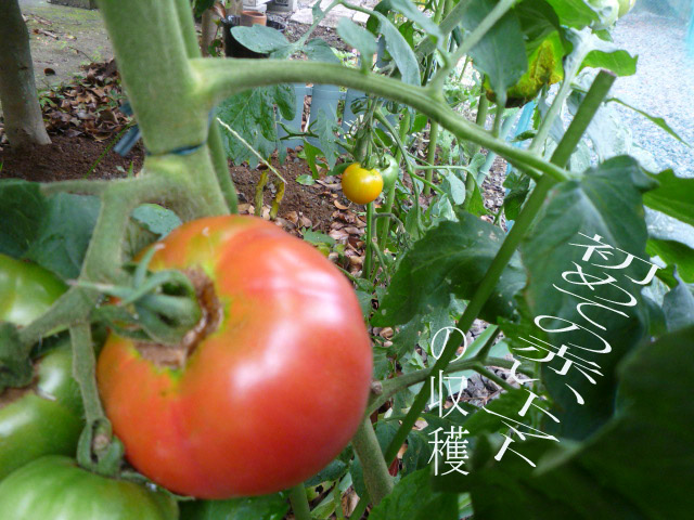赤い大きなトマト、Kako様に収穫させてあげました。黄色のトマト、kako様は初めてとの事でした。