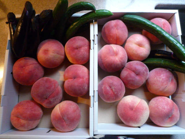 Y.W様が、お友達をお連れ下さいました。また「春日居の桃」やお母様がつくられた「胡瓜」や「おナス」を持ってきて下さいました。