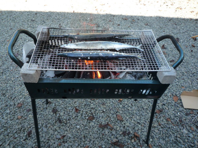 お客様の様子をみながらのバーべキューでしたので、少し慌てましたが、A.A様が折角新鮮な秋刀魚を持ってきて下さいましたので、焼いて早めのお昼となりました。