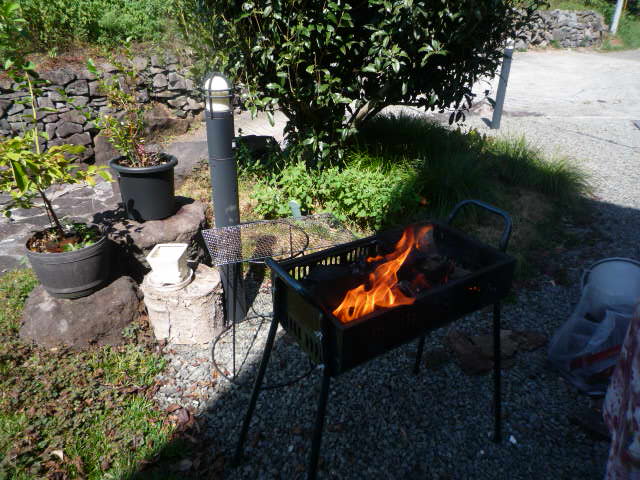 作業終了後、A.A様が、秋刀魚、イカなどを焼いて下さり、皆でいただくお食事がとても美味しく感じました。