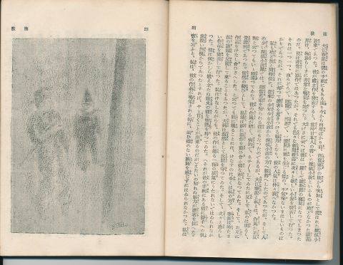 雑誌・新青年の昭和3年8月、9月、10月号に掲載されました挿絵は14枚ですが、この中から6枚の挿絵が掲載されておりました。