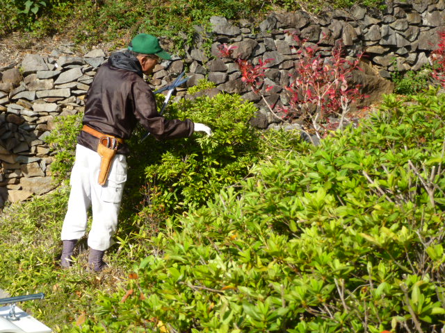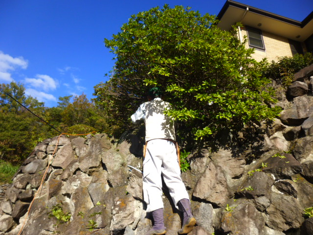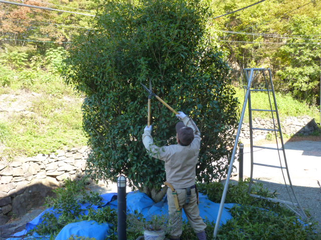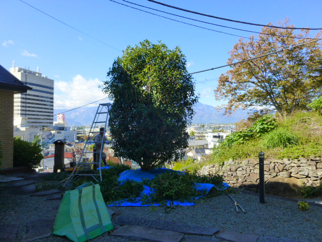 金木犀、山茶花、さつき、つつじ、百日紅、柘榴、南天、椿、桜、枝垂れ梅などの剪定をしていただきました。