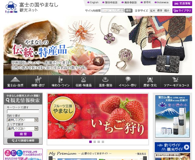 公益社団法人・やまなし観光推進機構が運営しておりますメインの観光サイト