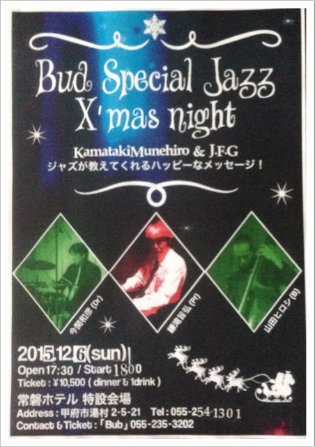 昨夜は、鎌滝旨弘様主催の"Bud Special Jazz X'mas night"にお友達と行って参りました。