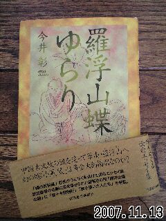 休館日の今日お出でくださいましたのは、昨年5月に出版されました「羅浮山蝶 ゆらり」の著者、今井 彰様ご夫妻でした。この本の中で蝶を描いた人たちに父の事をお描き下さいました。使用されました作品は映画「戒厳令の夜」のために描きました(少女像A)の一枚です。