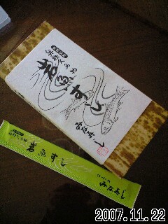 いつもお世話になっておりますY様から、奥秩父名物の「岩魚すし」と銘菓「秩父山車」いただきました。昨日埼玉にお出掛けされおみやげですとお持ち下さいました。