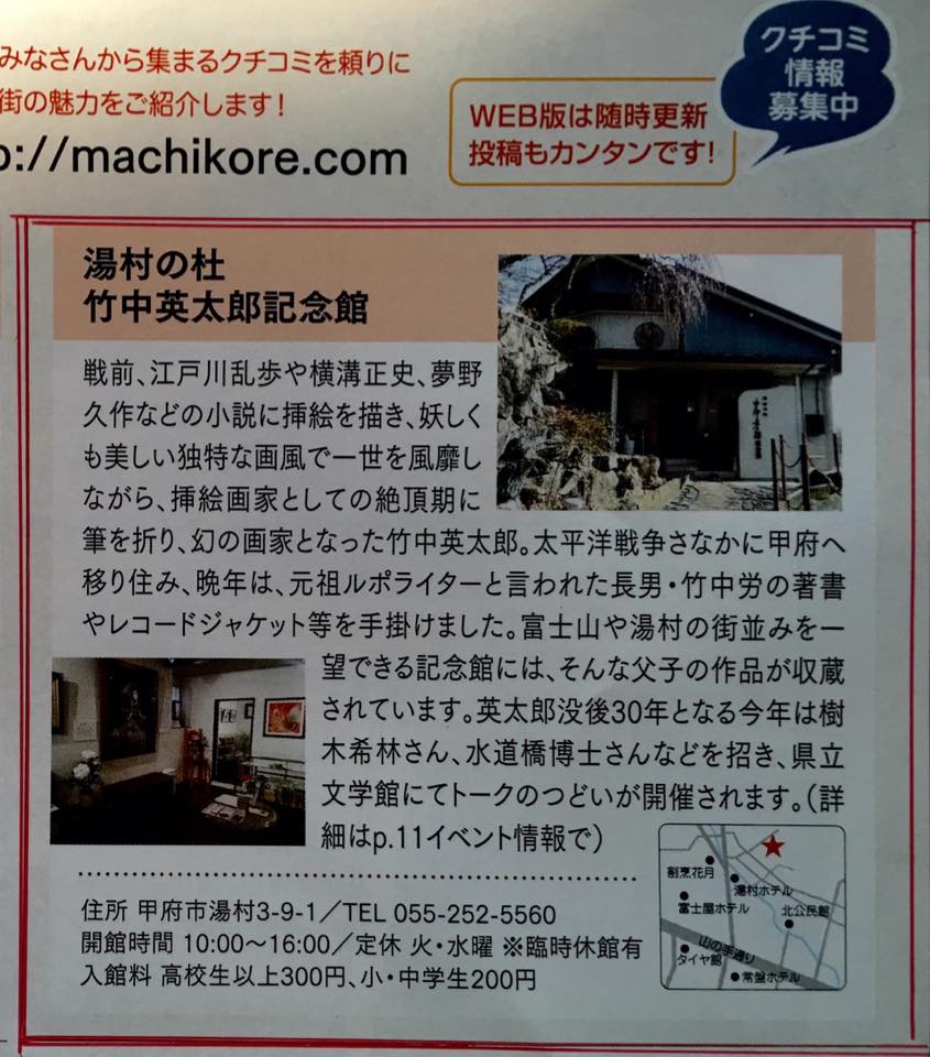 竹中英太郎没後30年「竹中英太郎・竹中労父子を偲ぶトークのつどい」& 記念館紹介記事が掲載されました。