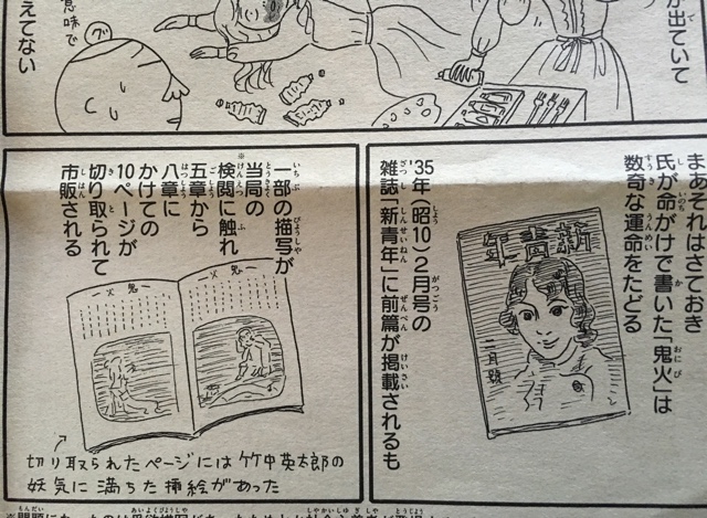 漫画家・イラストレーターのグレゴリ青山様が、横溝正史氏の「鬼火」にまつわる話題をお書きなられ、その中で、英太郎の挿絵のことについて触れられておりました。グレゴリ青山様のイラストの挿絵です。