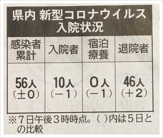 県内の感染者は4日連続ゼロですが、やはり不要不急な外出を避け、マスク、手洗いなどに気をつけたいと思います。