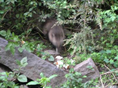 今日は、慣れているたぬちゃんが夕方はやくにご飯を食べに出てきました。人がいないとゆっくり食べますが、今日は数人が近くにいましたので警戒してなかなか食べそうにないので、パンを投げてあげるとすぐに口に入るだけくわえ持っていきました。これをパンが無くなるまで何回も繰り返します。今、記念館の近くの家が改築工事をしていますが、その方達も何回もたぬちゃんにであったそうです。かわいいですよ。