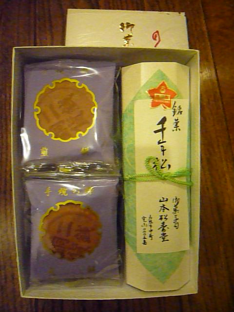 三重県名張市に行かれた時のお土産、「二銭銅貨」煎餅も頂きました。名張市は江戸川乱歩氏の生誕の地、乱歩氏(29歳)のデビュー作「二銭銅貨」から名付けられたお菓子です。前にK様からも頂戴した事がありこのお菓子は知っておりました。