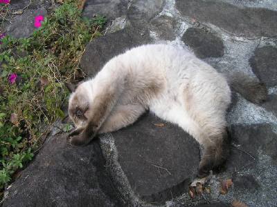 猫のななちゃんは蝶を追いかけることも無く、人の気を惹こうとするようにいろいろなポーズでじゃれてくれます。他の三匹の猫ちゃんはお出かけしていて姿が見えません。